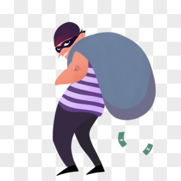 手绘盗窃背着脏物逃跑免抠素材