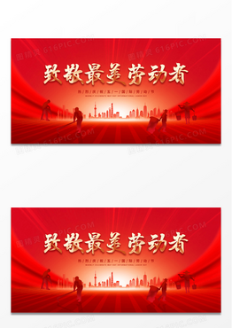 红色中国风致敬最美劳动者51劳动节国花花朵劳动剪影宣传展板五一51劳动节