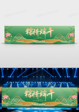 绿色简约粽情端午祖母绿简约端午节宽屏舞台展板