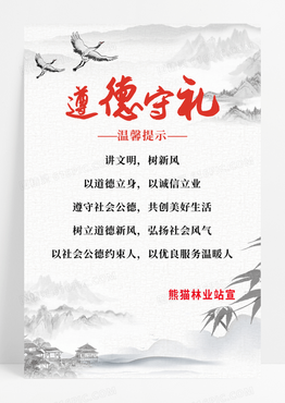 灰色中国风遵德守礼温馨提示海报