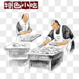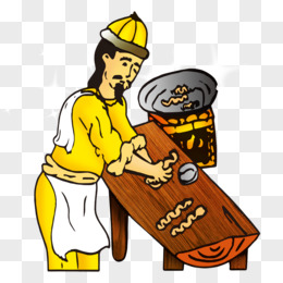 手绘卡通挑担子的卖货郎挑重物免抠元素
