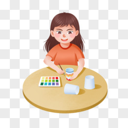 手绘女孩做手工素材