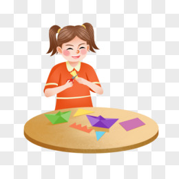 创意插画儿童做手工剪纸元素