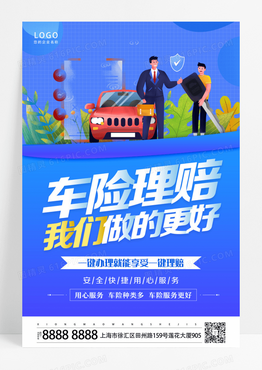 蓝色卡通车险理赔我们做的更好保险宣传海报设计