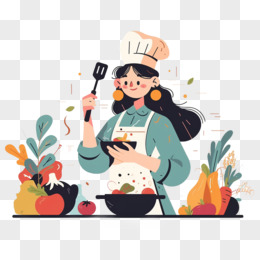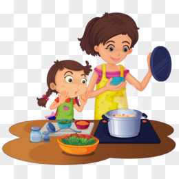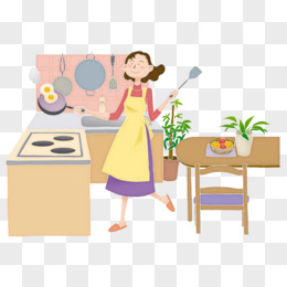 卡通手绘妈妈洗菜切菜做菜套图元素