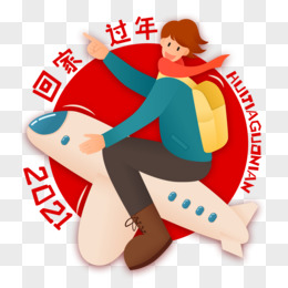 卡通手绘春节坐着飞机回家过年创意元素