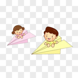卡通手绘可爱女孩男孩坐纸飞机免抠元素