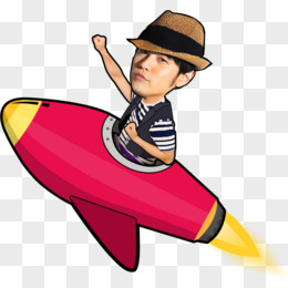 手绘卡通男生坐飞机免抠元素