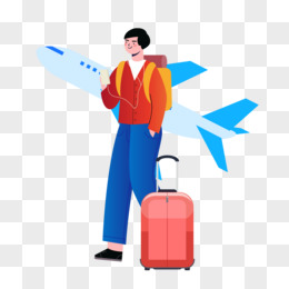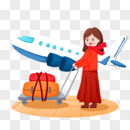 手绘卡通女生新年坐飞机回家免抠元素