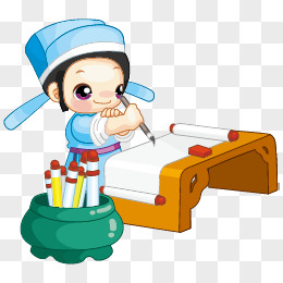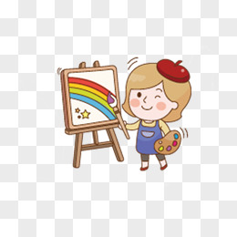 手绘卡通女孩画画免抠元素