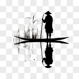 穿蓑衣戴斗笠的人划竹筏剪影素材