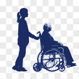 蓝色剪影一个女孩推着坐轮椅的老年人免抠元素