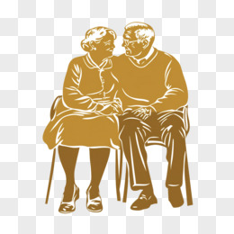 金色剪影一对老年夫妇坐着相拥免抠元素