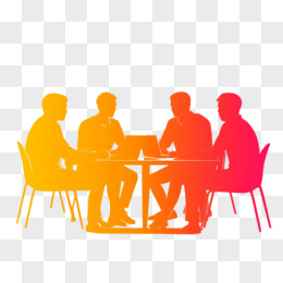 橙色剪影图一群人坐着讨论问题免抠元素