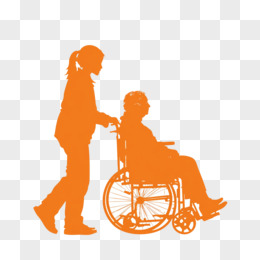 橙色剪影一个女孩推着坐轮椅的老年人免抠元素