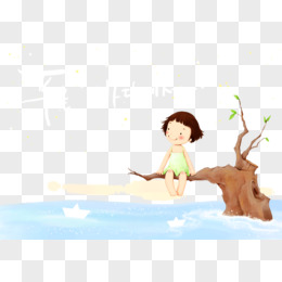 手绘唯美插画风女孩坐在柿子树上免抠元素