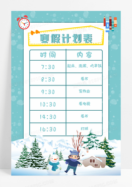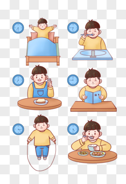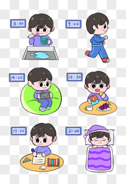 一组卡通男孩寒假作息时间表套图系列二合集素材