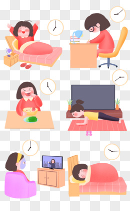 一组手绘卡通女孩寒假作息时间表套图合集素材