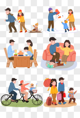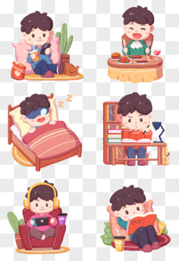 一组卡通手绘小学生寒假生活作息套图合集元素
