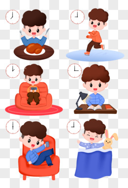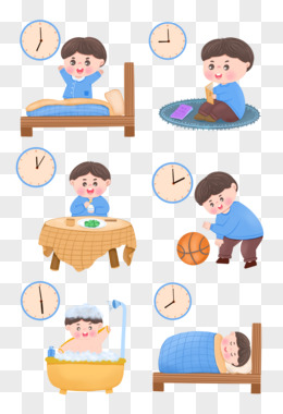 一组卡通男孩寒假作息时间表套图系列一合集素材