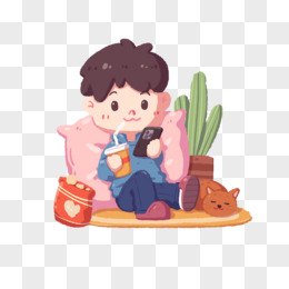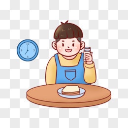 一组手绘男孩寒假一天日程套图之吃晚饭元素