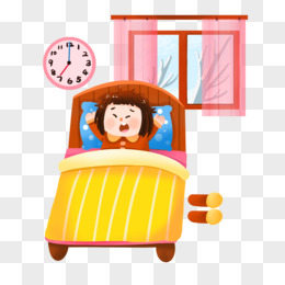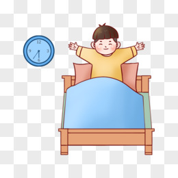 一组手绘插画风寒假小女孩作息时间套图之起床元素