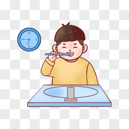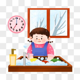 一组手绘插画风寒假小女孩作息时间套图之洗碗时间元素