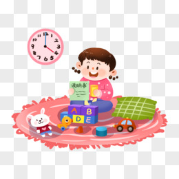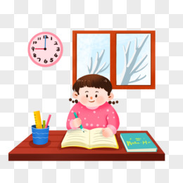 一组手绘插画风寒假小女孩作息时间套图之学习时间元素