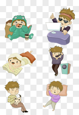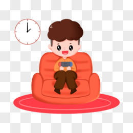 一组手绘男孩寒假一天日程套图之休闲玩手机元素