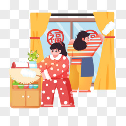 创意插画大学生寒假生活帮忙大扫除元素