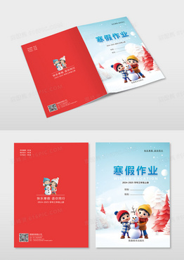 红色立体纸艺术寒假作业封面设计