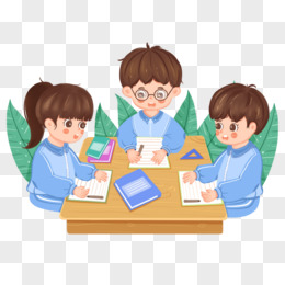 手绘卡通小伙伴坐在书本上飞翔免抠素材