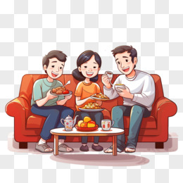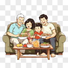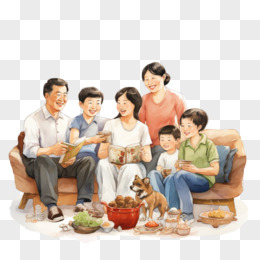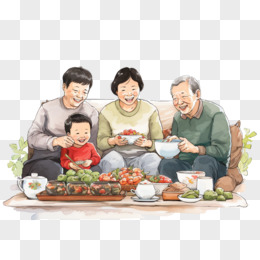 .农民全家坐在碗里走上小康场景手绘免抠元素