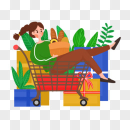 手绘插画风小女孩与小鸟一起玩耍免抠素材