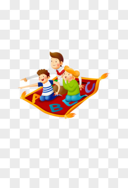 手绘卡通快乐女孩坐在书上飞行场景元素