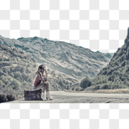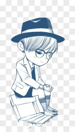 手绘卡通坐在地上喝水的女孩子免抠素材
