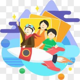 简笔画小孩儿童开心的坐在笔上免抠元素
