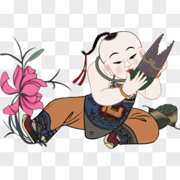 坐着吹笛子的娃娃