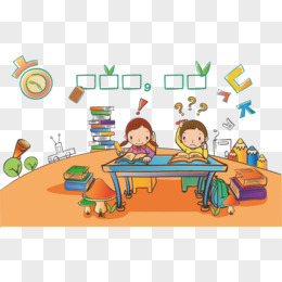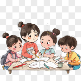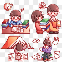 手绘卡通小朋友认真写作业奋斗免抠元素