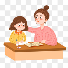 手绘卡通妈妈辅导女儿作业插画免抠元素