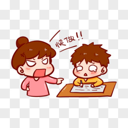 卡通手绘妈妈喊孩子赶紧做作业表情包