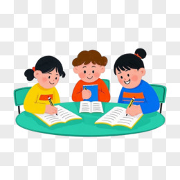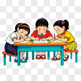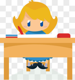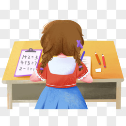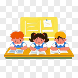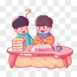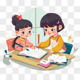 卡通风开学季两个学生在课桌上做作业免抠元素