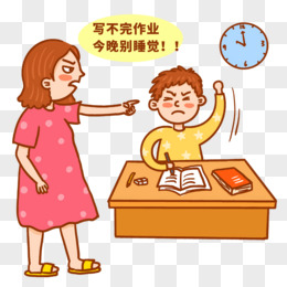 手绘卡通妈妈辅导写作业表情包免抠元素