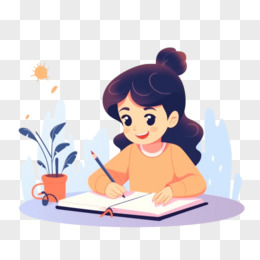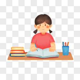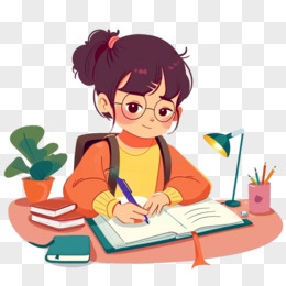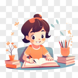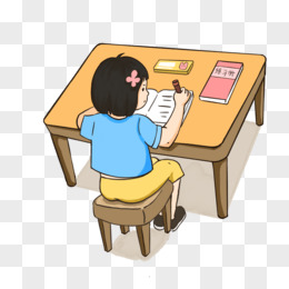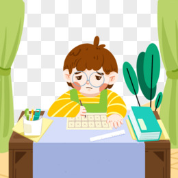 卡通小男孩认真写作业奋斗的场景免抠素材
