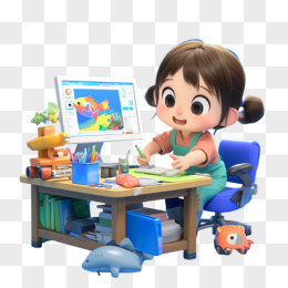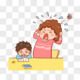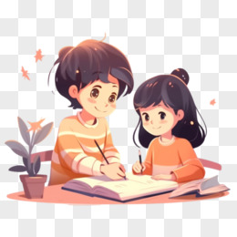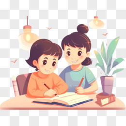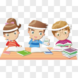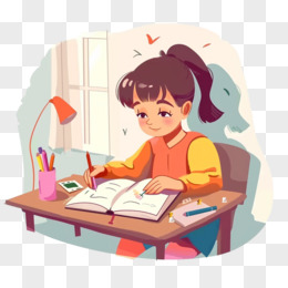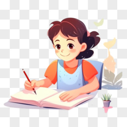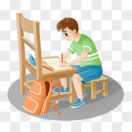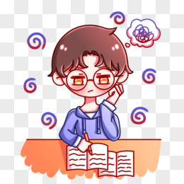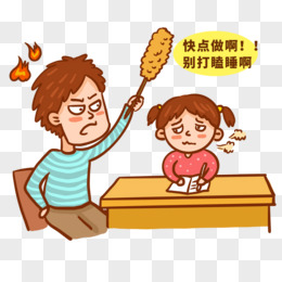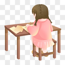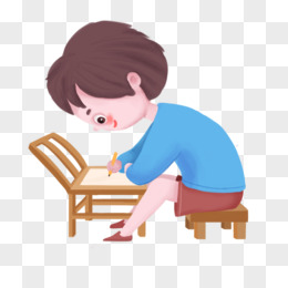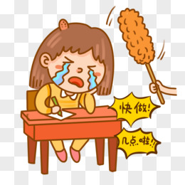 卡通手绘小朋友绞尽脑汁写作业场景素材
