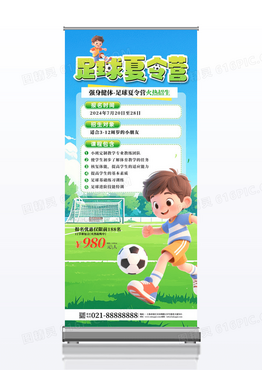 绿色3D风足球夏令营招生展架足球夏令营展架