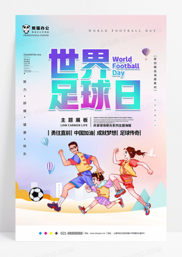 彩色蓝色渐变卡通手绘世界足球日宣传海报